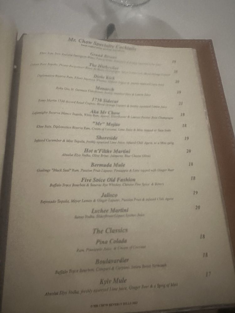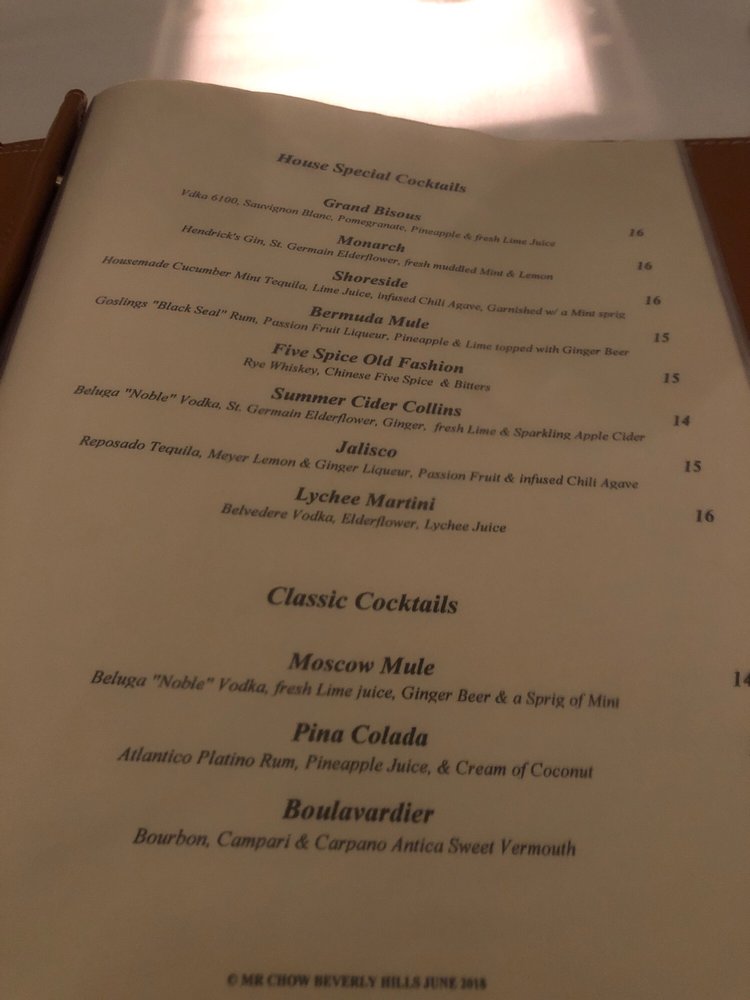 “ The fact that I've been coming to Mr. Chow's since a kid and the quality and taste remains the same. I haven't been here in a couple years and I decided to come here for dine LA experience and of course the regular menu lol.. Options were really good. I ordered the Spare ribs for first course, Beijing chicken my second course, and for your side, they gave you shrimp fried rice, and mix vegetables, which was so good. Everything was very good, what we ordered. They also have many cocktails and mocktails to choose from! I ordered the 1739 sidecar, which was very delicious!! The service is phenomenal from the valet until when you entered to be seated and all the people who help you out it's many servers and busybody that help you, and they're very efficient and always come and check on your table and clean off your table, which is a plus for me . The ambiance is so pretty and the decor, and very elegant and classy and upscale vibes. They have private rooms for parties, and two sides that you can dine on. This place is definitely good for celebrations, which my family had many parties here and my friends. Also, it could be good for date night or I would say pretty much any type of occasion. It's pretty much only valet parking unless you want to do street parking but I am not sure how that goes. I don't want to take it so I never risk it but if you do park valet is $20. Overall, I highly recommend Mr. Chow's!! the ambiance is great, the food quality, and exceptional customer service!! -Marshay D. ”