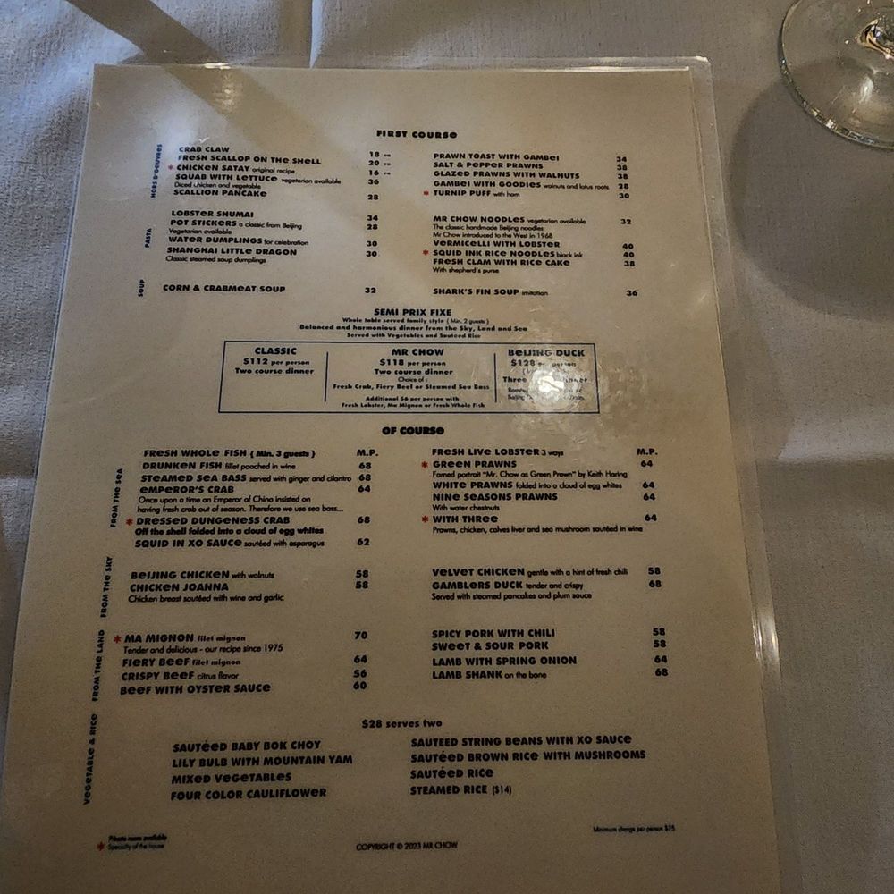 At Mr Chow, a prestigious dining destination in Beverly Hills, we blend tradition with sophistication, serving up exquisite Chinese cuisine in an upscale setting. Known for its immaculate service and glamorous ambiance, guests are treated like royalty amidst silver-plated serving platters and elegantly dressed waitstaff. Our menu showcases classic Chinese dishes, elevated in flavor and presentation, while offering vegan and pescatarian options. With a vibrant atmosphere perfect for celebrations and intimate dinners alike, Mr Chow remains a beloved staple for both locals and visitors seeking an unforgettable dining experience. Join us for a culinary adventure that promises to delight the senses.